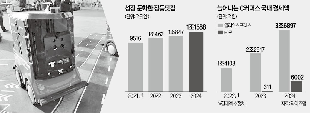 국내에 진출한 C커머스 업체들은 초저가를 내세워 시장을 파고들고 있다. 모바일 시장분석업체인 와이즈앱에 따르면 지난해 알리익스프레스의 한국 결제액은 약 3조6897억원으로 추산됐다. 2022년 추정치(1조4108억원)와 비교하면 2.6배 이상 늘어난 금액이다. 테무는 결제 추정액이 2023년 311억원에서 지난해 6002억원으로 급증했다.