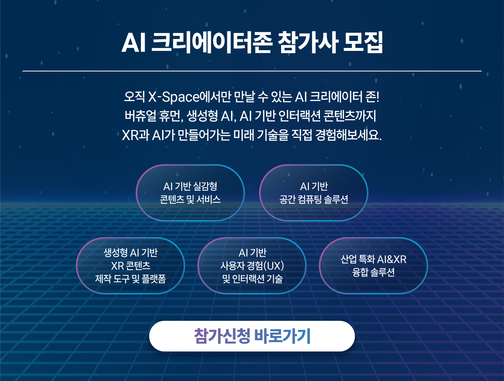 오는 10월 코엑스에서 개최되는 2025 한국전자전 - XR&공간컴퓨팅 특별전에서 AI 크리에이터존 참가기업을 모집합니다.